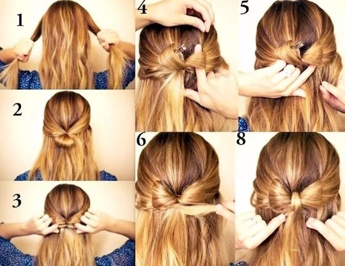 Options school hairstyles diversifies French braid or fishtail, who trudge all over the head. This hairstyle is guaranteed to last a whole day, in addition, it will be convenient to practice at your desk or in the gym. Long hair makes it possible to make them a bow. To create it, you need to collect the upper part of the head of hair, capturing the temporal locks on each side. After that, they need to pass through the gum, but not fully stretch the strand, leaving a kind of loop. This loop should be divided into two sides, and the remaining end should be made in the bow in the middle, securing it with the help of invisible.