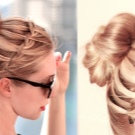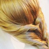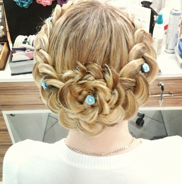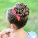 Ordinary classic pigtail on the short length does not look so impressive. However, slightly flared loops quickly correct the situation. Braiding the braid, secure the tip with a rubber band. Then hide it, passing it through the gum. Making sure that the pigtail is tightly fixed, it is necessary to start pulling out the braided eyelets, forming a sloppy, volumetric flower.