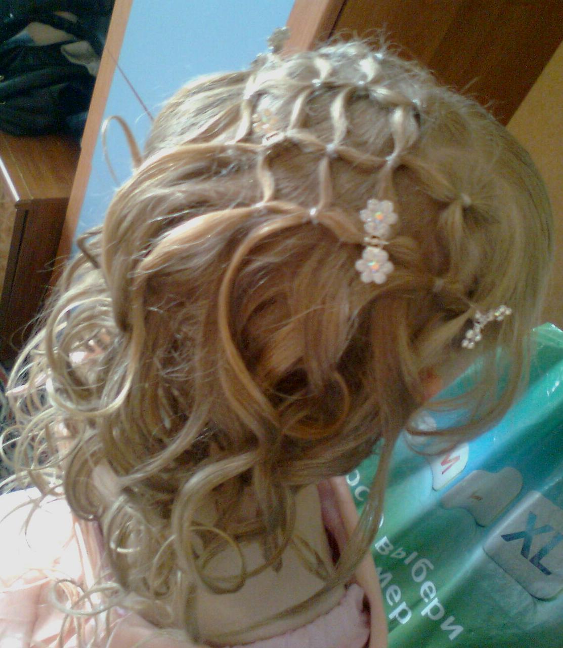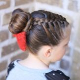 Despite the fact that beautiful hairstyles visually look complicated, they are quite simple in execution. Braid cross braids and collect a high beam can any mother. The collected curls not only meet the school requirements, but also look stylish and original.