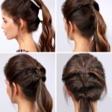 - For the next hairstyle, you will need to make three identical tails, which will be located strictly in the center of the head one after the other (in the direction: top of the head - back of the head). Then alternately the tails turn out through themselves so that the tip can be tucked into the “loop” of the next tail. Turns out interesting option normal low tailwhich will surely attract the attention of others.