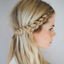 A thin braid, braided from a small section of hair and wrapped around the head, will help to replace the bezel and give loose hair originality. This method is suitable exclusively for the length below the blades.