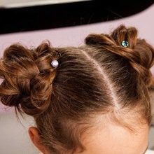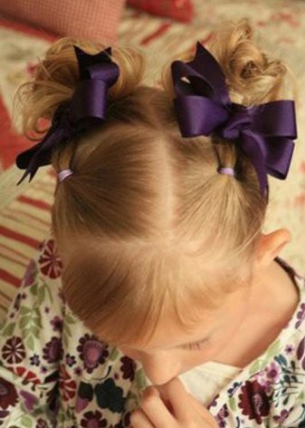 Based on the length and type of curls in the girl, you can choose the best option. Laying can be not only comfortable and stylish, but also easy to perform. In the case when the mother does not have time to devote time to create her daughter's styling in the morning, she will be able to cope on her own.
