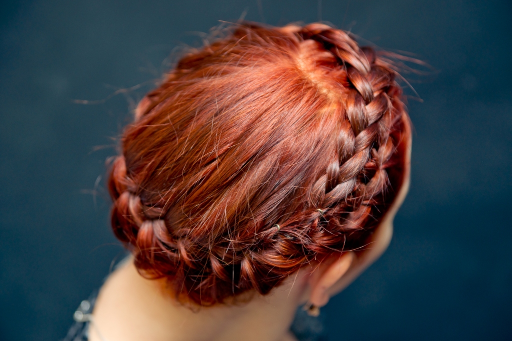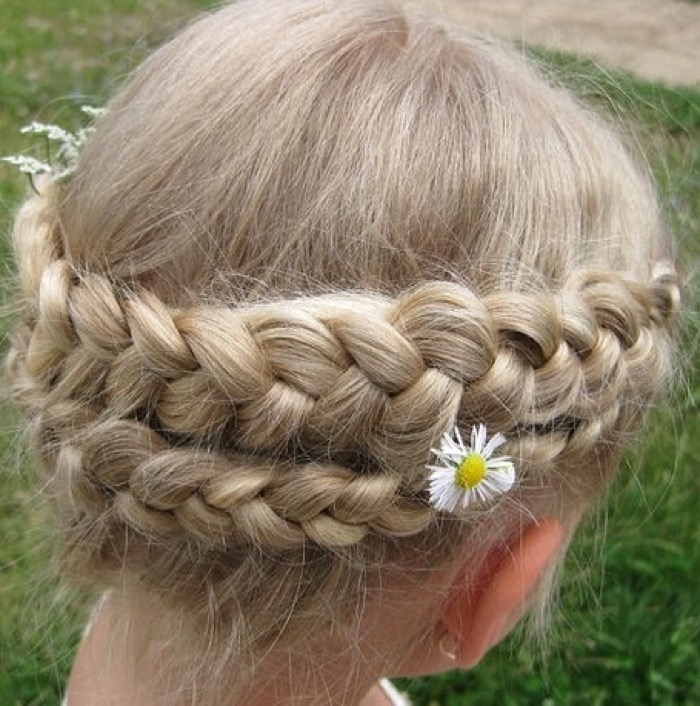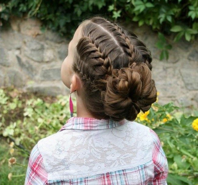 - An excellent option would be a reverse (or French) braid, which weaves from the temporal region around the perimeter of the head and is decorated with a white bow or rubber band.