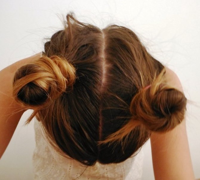With a short length, it is undesirable to raise the horse's tail too high. Otherwise, short strands will eventually fall out. One or two bunches on the head of the schoolgirl give the image a neat look. Hair removed will not only emphasize the young oval of the girl's face, but also help you not to be distracted from the words of the teacher.