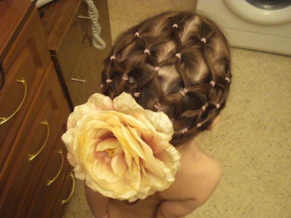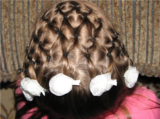 - Another interesting and spectacular option is the "web". First you need to make three tails on the upper part of the head and fix them with elastic bands. Next, each tail is divided into two parts, which are subsequently connected with the rest, gradually moving along the entire length.