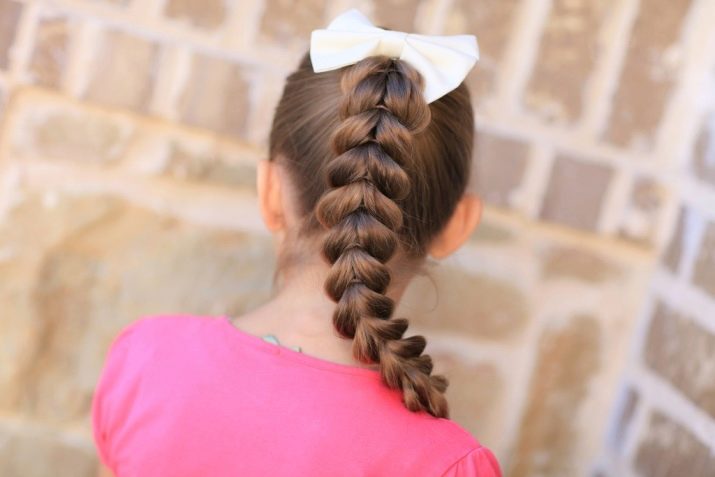 Well, the braid, the varieties of which today have accumulated an unprecedented set, will bring a little imagination into the daily installation. It is desirable for pupils of elementary grades to tighten their braids a little tighter, since it is likely that by the end of the classes they will become loose.