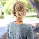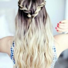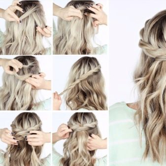 If the hair is not thick, you can make a hairstyle with braids in the form "Malvinki" or to connect back hair with the help of two braids. To add volume, the strands can be pulled out a little in the course of gradual weaving to make the pigtails appear laced. The rest of the hair is best left free. This hairstyle will look equally beautiful on straight or curly hair.