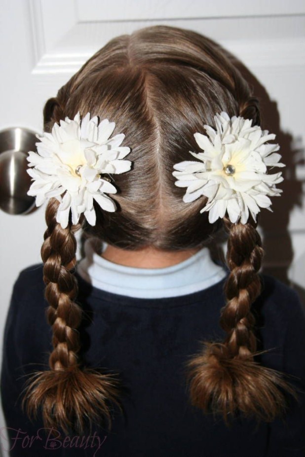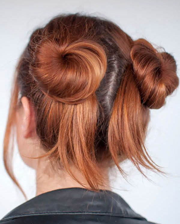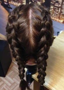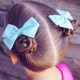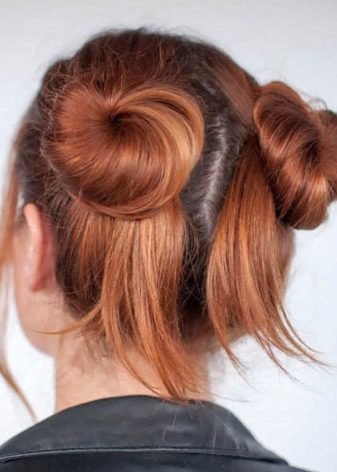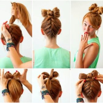 A very easy and comfortable hairstyle for all ages will become symmetrical horns, to create which will need only a few rubber bands and invisible.
