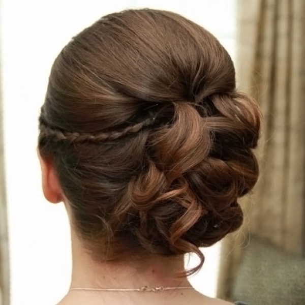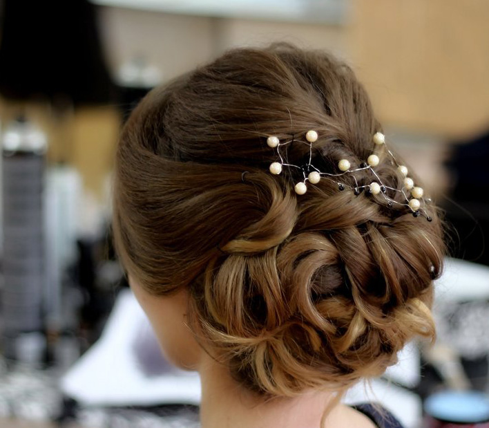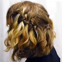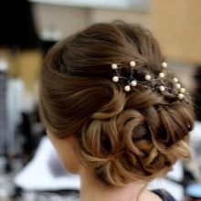 For the holiday, girls with medium hair length can make a very airy and beautiful hairstyle - “cascade”. To create it, you should comb the hair on one side, and then collect each of the sides along the strands, fixing them on the back of the head. Then such a collected tail twists through the middle, the following hair is collected in a similar pattern. For a solemn occasion at the bottom of the hair, you can leave loose and twist a little.