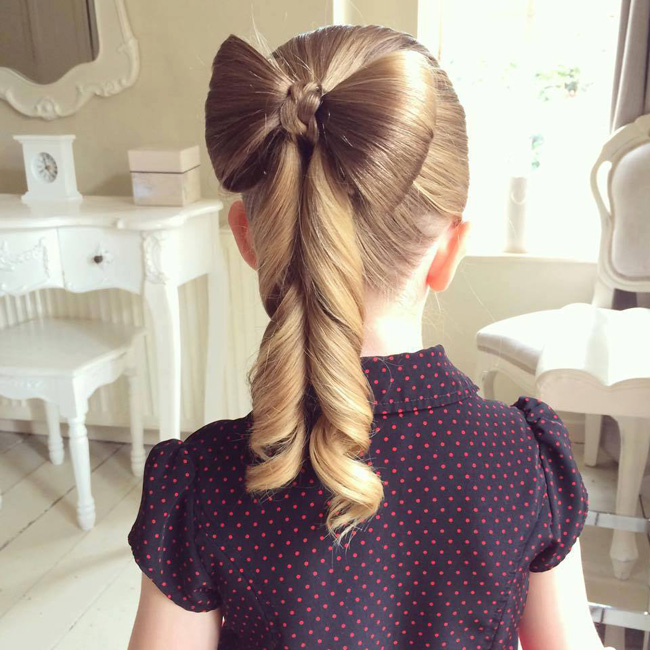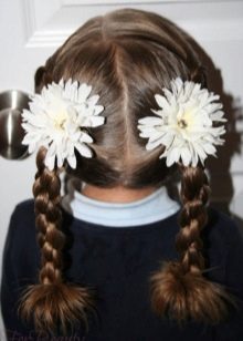 The most popular and versatile option that will be relevant for children studying in elementary school, girls 10 years old or 13 years old, as well as graduates of the school. In addition, the main advantages of tails are significant time savings on the creation and presence of a mass of variations of a similar hairstyle with medium-length hair.