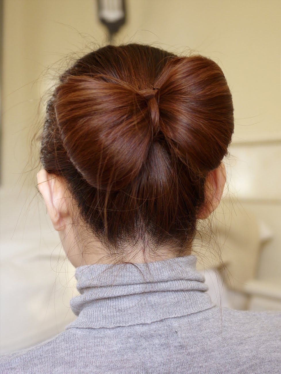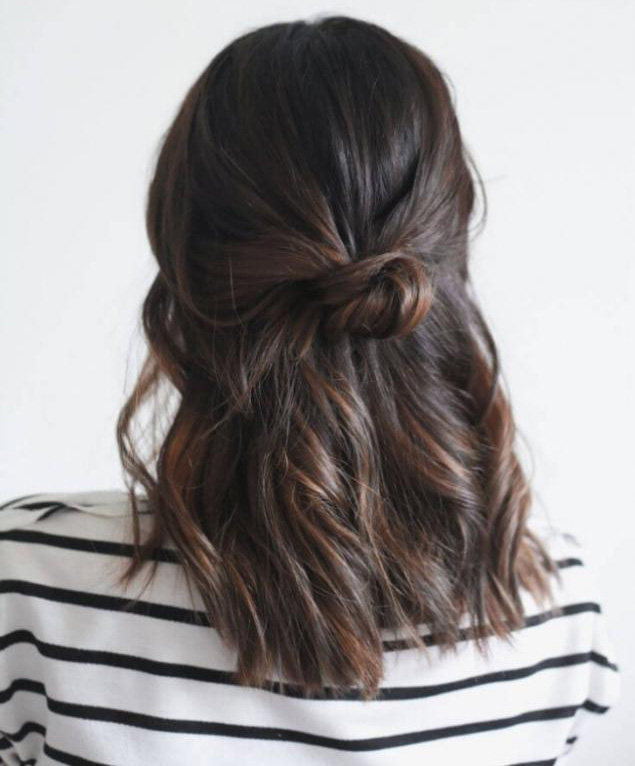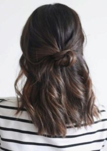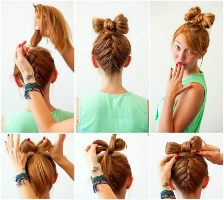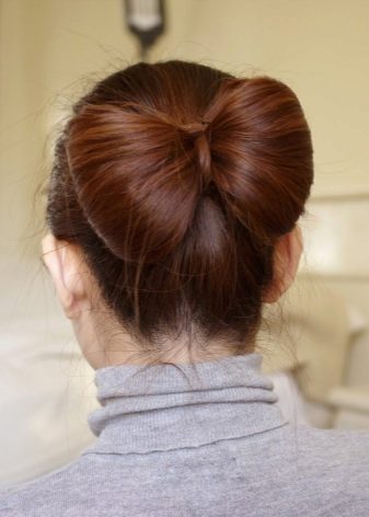 A bow of natural hair, which is very quickly and easily done on medium-length hair, can become a very beautiful daily hairstyle. For this option, you should collect the hair in the tail, and then divide the entire volume into two parts. Of them are loops, shaped like a bow.