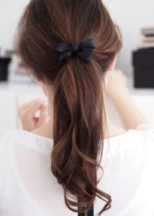 It is possible to fasten the tail on the crown with a beautiful bow, hairpin or hide the base under a strand of your own hair. In addition to the smooth horse tail, you can use options with wavy ends. To do this, you can braid your hair at night in a braid, or use soft curlers.