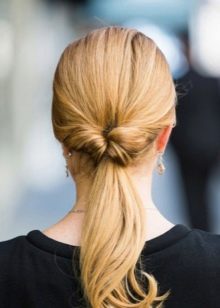 It is created according to a similar scheme, however, loose hair from the tail should be twisted with bundles and twisted together, fixing an elastic at the bottom.