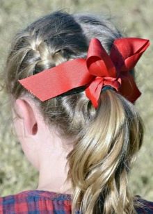 The most common hair decoration for schoolgirls are bows, but for everyday wear they will not be very comfortable.Therefore, it is possible to diversify the image with the help of soft rubber bands of different colors, different headbands, which will be useful if the girl’s hair is naughty. Also relevant to the school will be satin ribbons or lace bandages with elastic bands with various decorations.