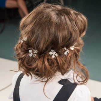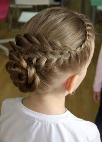 Pick up weaving options for schoolgirls can be based on age. For the lower grades of the school, the spit remains the most popular. Hair can be done in any technique, in this case, you can safely fantasize if there are no strict restrictions at school. It is important that the collected hair does not interfere with the girl during the training.