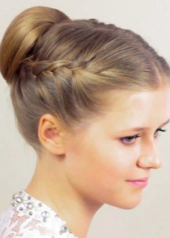 For adolescents who already want to stand out among their peers, you can do at the same time a stylish and suitable hairstyle for school if you collect standard high tail, which in length can be supplemented with two pigtails on both sides. You can also make a bunch of braids, securing hair with hairpins in a beautiful "bun". An inverted tail could be a good idea for high school students. To make such a haircut to school, it will be enough to collect a low tail, and in the middle to wrap it inside.