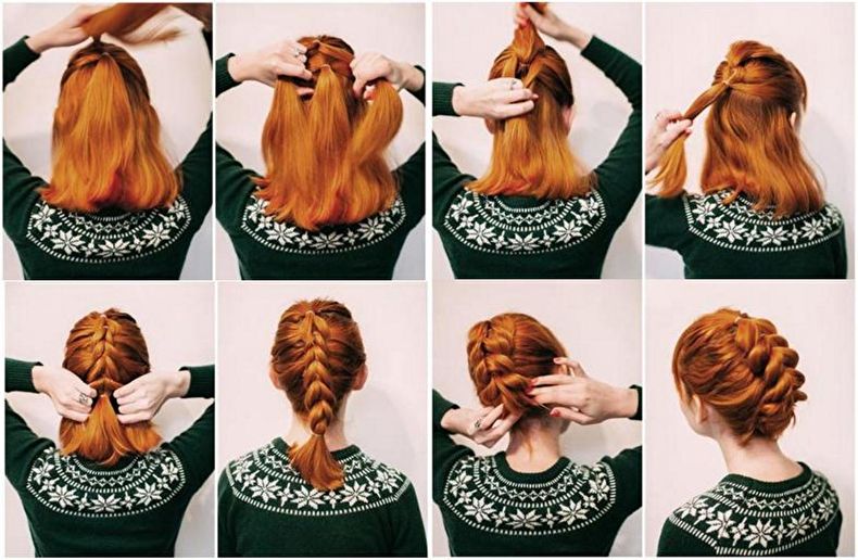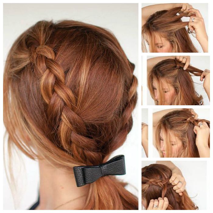 For medium length, you can use the French weave, which will braid the whole head with a zigzag, and end with a tail or oblique on the side. Such an idea will be universal for any image, and one gum with a small decor will be enough for decoration.
