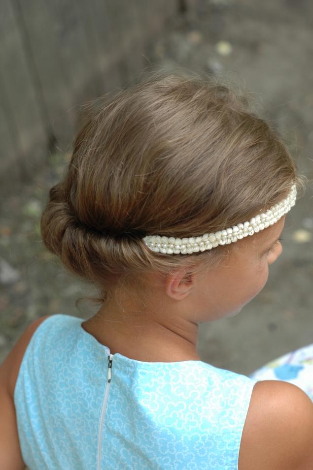 For first graders or older girls, the Day of Knowledge holiday will always require a beautiful hairstyle. For these purposes it is not necessary to use voluminous white bows, since a solemn and neat hairstyle can become if you make hair classic babette To quickly put your hair in a beautiful donut, you should use a special "bagel", which will help to create a hairstyle in just 5 minutes. To complement the created image, you can use a satin ribbon for the base or separately fasten a hairpin at the back or side. Also fringed the "bagel" from the hair with the help of a spit on the bottom of the left strands.
