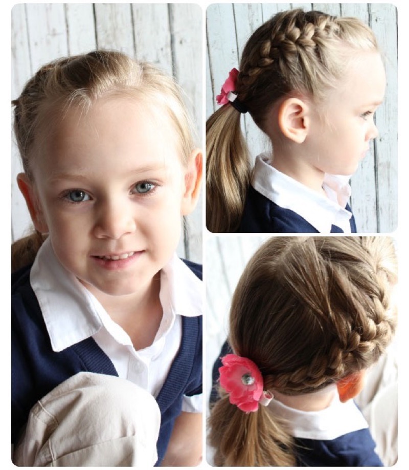 In addition to the classic version of one braid or two on each side, for girls of school age, French weaving can be used as a suitable hairstyle, which also does not take much time, and it will look much more effective. In addition, such an idea would allow hair to be collected all over the head, which would be more practical for medium hair lengths.