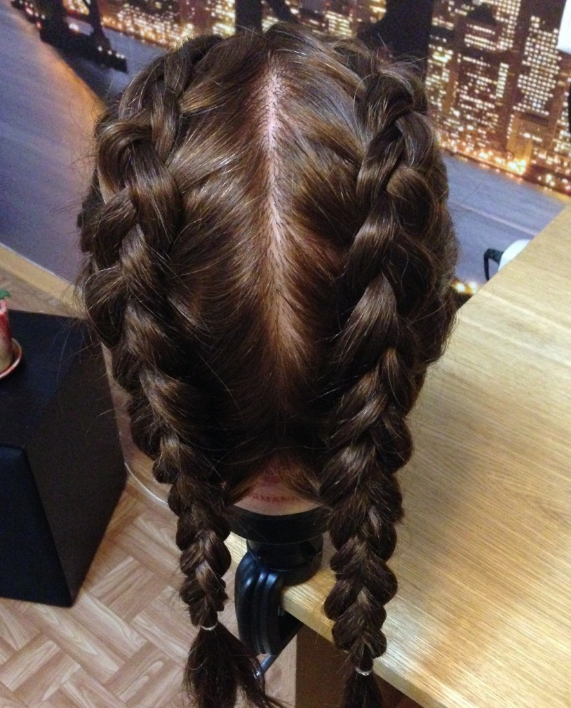 Also relevant will be two French braids with bulky oblong strands.