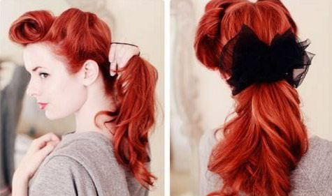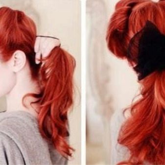 Take a comb with fine and thin teeth, comb hair. All other strands fasten with varnish, so as not to fluff. At the base of the tail you can tie a beautiful ribbon. Polka dots or just plain bright. After all, the main attribute of the style is bouffant and ribbon. This will give a special personality.