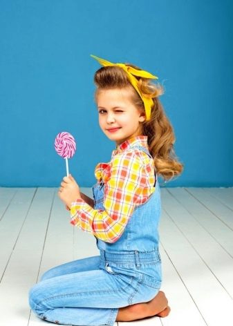 Bright and impressive clothes, large, all the colors of the rainbow beads and, of course, combed curls with ribbons in her hair are characteristic features of the image of the style. The youth of the 60s of the last century caused envy, admiration and exciting emotions. Creative adolescents thus emphasized their individuality and importance in society. Decades later, the fashion for styling hairstyles has only improved. Especially large variety of children's hairstyles.
