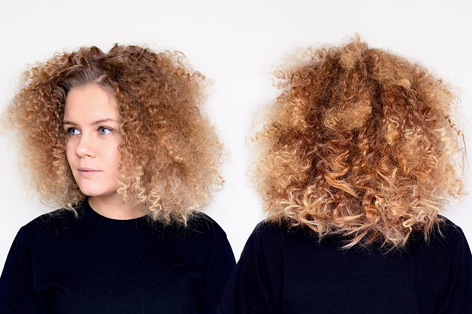 - gently comb curls, additional impact strongly puffs hair, curls lose clarity, there is a risk to get the wrong result;