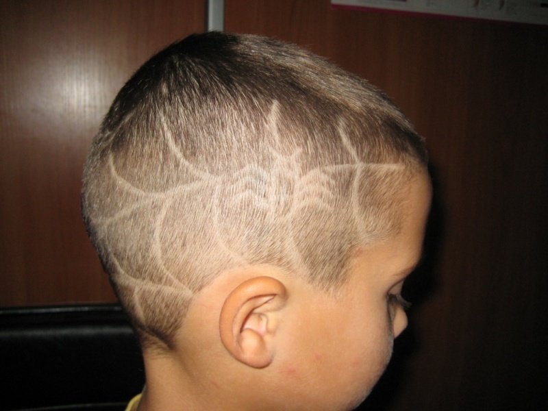 This option has become popular for a long time, but for many years its relevance has not diminished at all. Thanks to unique designs, boys can express their individuality and develop creative fantasies. The main thing is that the child consciously went to such a step as a shaved pattern.Some schoolchildren do not just choose drawings from the catalog, but offer their own variations, for example, to depict the Spider-Man web above the ear.
