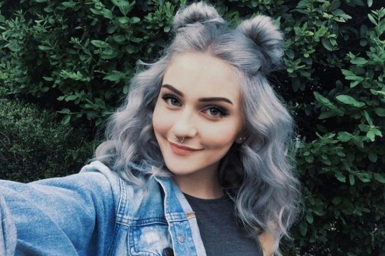 For example, on young ladies with a wavy or twisted head of medium length, two bunches in the area of the crown look beautiful against the rest of the loose strands. The trend of recent years are non-standard hair shades. In this case, the average curls of a pale blue or gray-blue shade will look good.