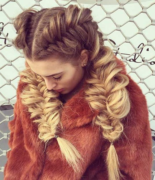Two braids on the sides can completely replace any more complex hairstyle. A variety of pigtails are equally well suited to young girls, girls, and even older ladies. Moreover, these hairstyles are appropriate for any occasion, whether it be an exciting celebration of the type of wedding or graduation, or just going to a cafe with friends. Depending on what image you want to add, you can braid French braids, two fish tails or variants of the braids inside out. Pigtail styling looks great on any hair: red, blond, blond and dark.