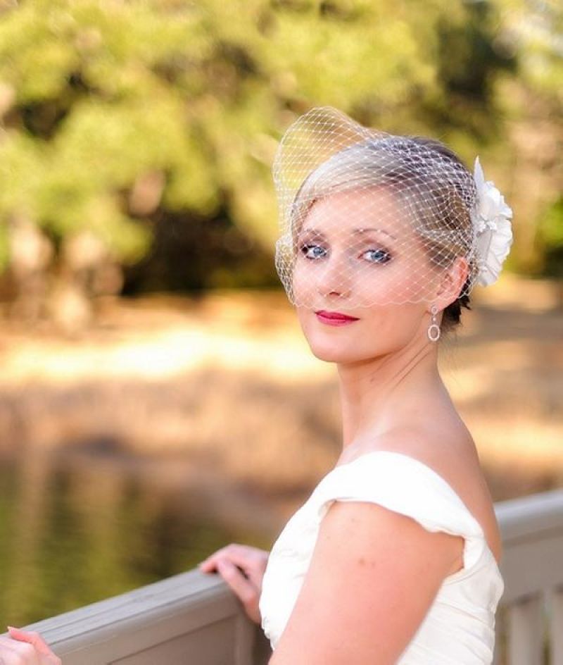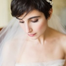 Undoubtedly, accessories play a huge role in creating many breathtaking wedding looks.A simple elegant thin veil balances the bulk of the wedding dress and draws attention to the short haircut. Jewelery combs are also an excellent option if you have a short bob or just enough hair to hold them in place. A floral wreath is also a great accessory for any bride with short hair.