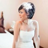 Short hair together with the correct design of a wedding dress can create both mischievous and feminine, glamorous look. Short hair is ideal for brides who choose dresses with interesting details, with a large neckline or high collars. In this case, long hair will not cover the details of your gorgeous wedding dress. And you can decorate your hair with accessories or flowers, without creating the impression of too much abundance of jewelry. Instead, you'll look fresh and elegant.