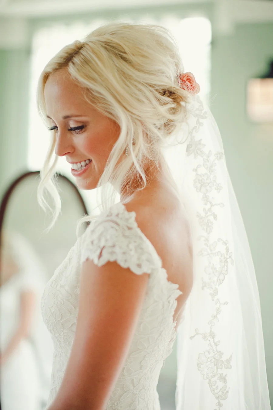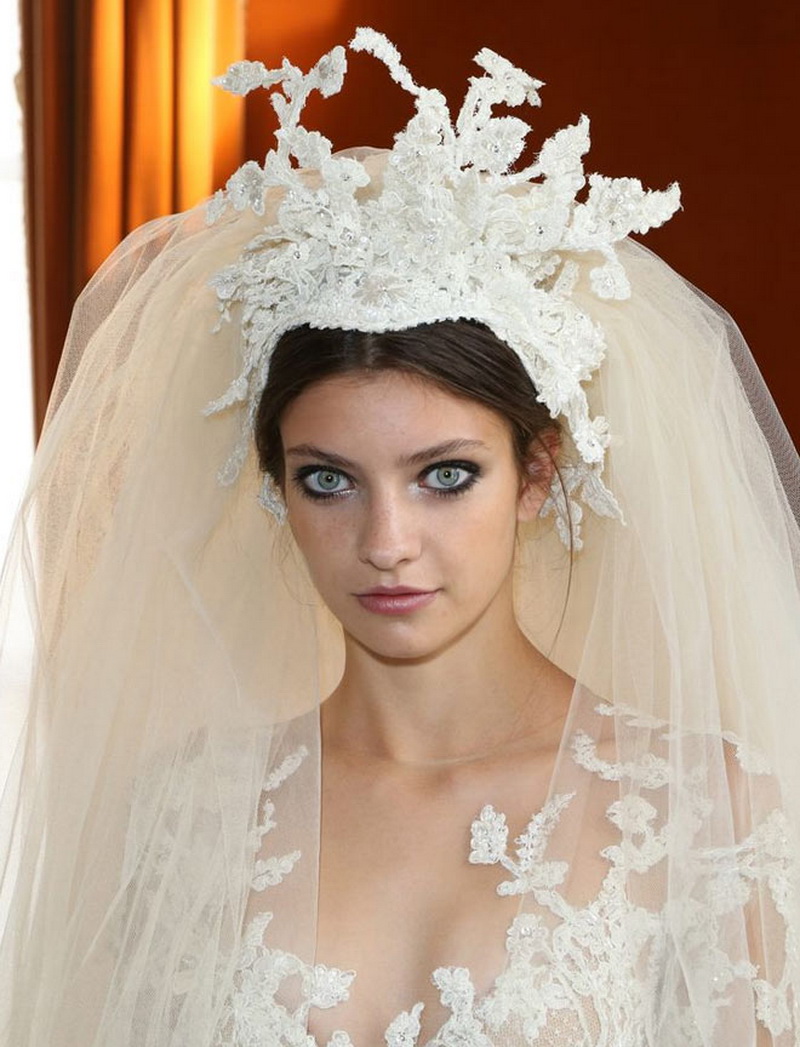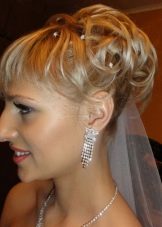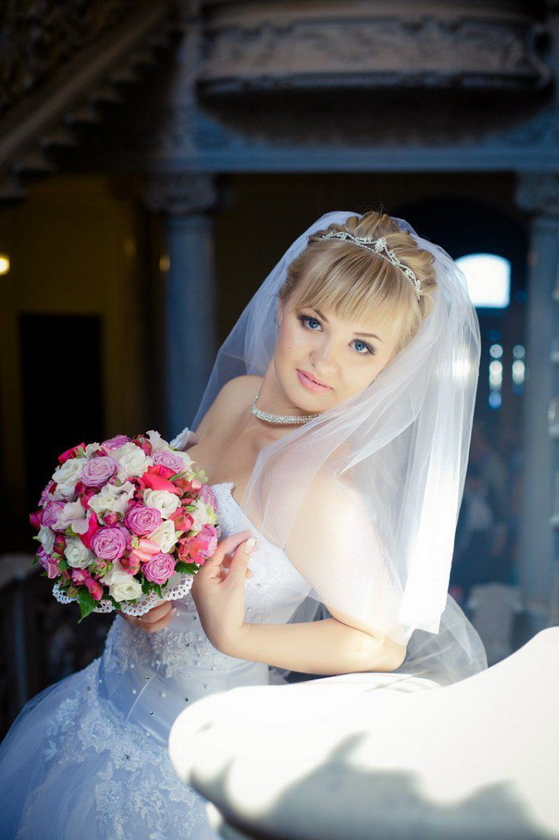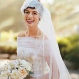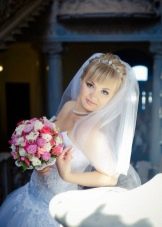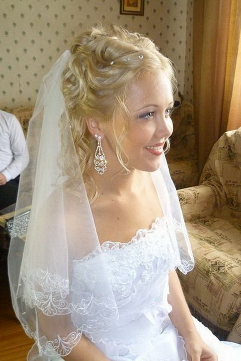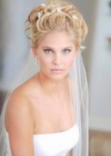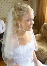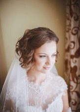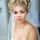 The veil serves as a classic touch to the wedding hairstyle. Almost every wedding hairstyle can be worn with a veil, the key here is its placement. If you have a small knot of hair on your head, fasten a veil under your hair to obtain a non-standard effect. If you want the veil to flow with the waves in the wind, place it over a hairstyle that will look very romantic.