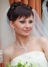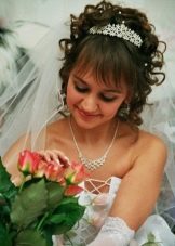 Ideally, the wedding hairstyle should match the style of the wedding dress. If you choose a dress in the style of "princess", then a lush hairstyle - this is usually the best option. For a simple, modern dress, the usual “ponytail” or a knot of hair will look modest and elegant. Glamorous evening dress looks good with smooth structured waves and shiny accessories.
