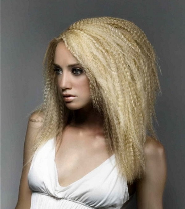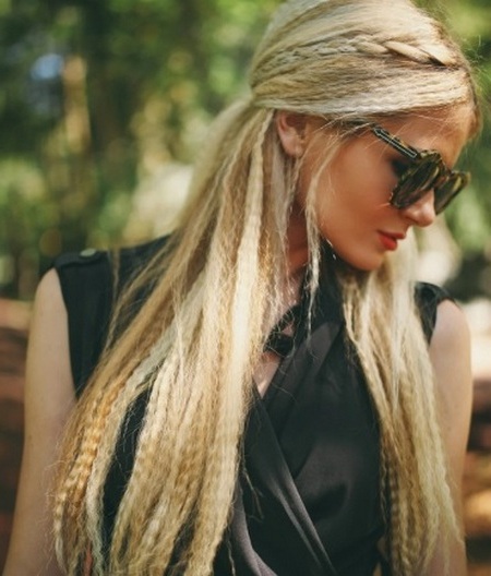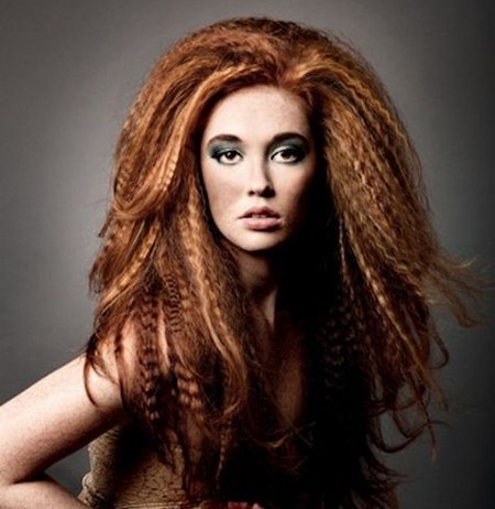 Corrugated strands are created by weaving braids. Pigtails need to be weaved tightly and to the very bottom of the hair, otherwise the ends of the strands will look inaccurately against the background of the head with waves along the entire length.