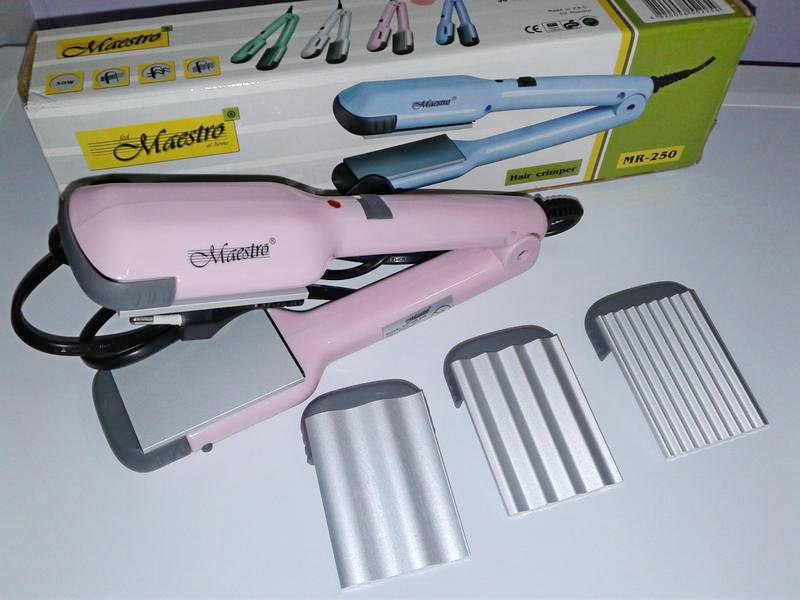 Corrugation is created using a special ironing. It looks like a regular hair straightener, only inside it there are bends, which create the necessary waves. Now these nozzles for corrugation come in a set to the usual straightening iron. Usually they are in a set of 3 - different widths.