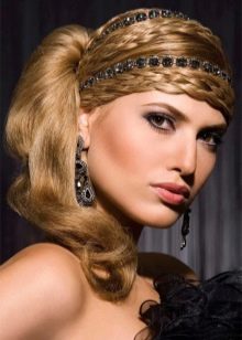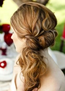This hairstyle is easy to develop. It will be suitable both for a cocktail party and a solemn event. There are several options. Let's get acquainted with the most popular.