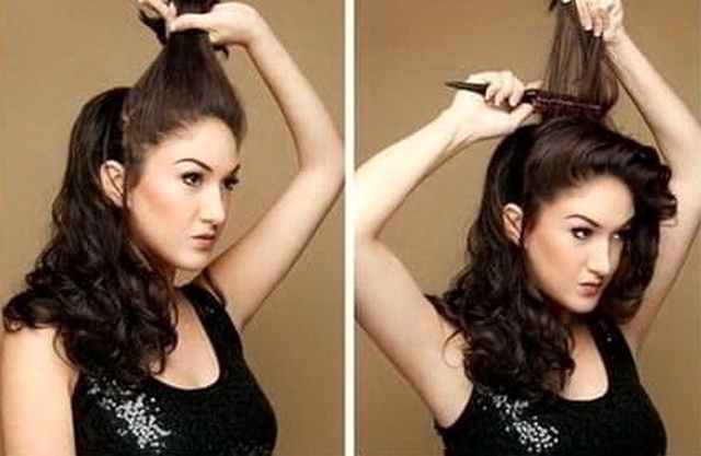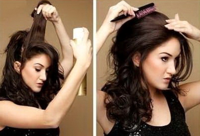 Owners of heavy and long hair will be more difficult to make bouffant. Use a roller, hair dryer and lacquer strong fixation to give maximum volume. We must remember that the quality of varnish depends on the final type of hairstyle. Step by step instructions for the first option is as follows: