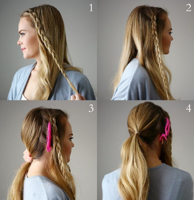 - further, collect the remaining hair in the tail or fasten it to its side;