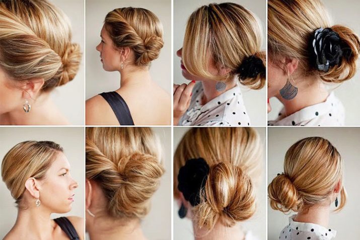 - collect hair in the tail at the base and twist the rosette clockwise or counterclockwise;