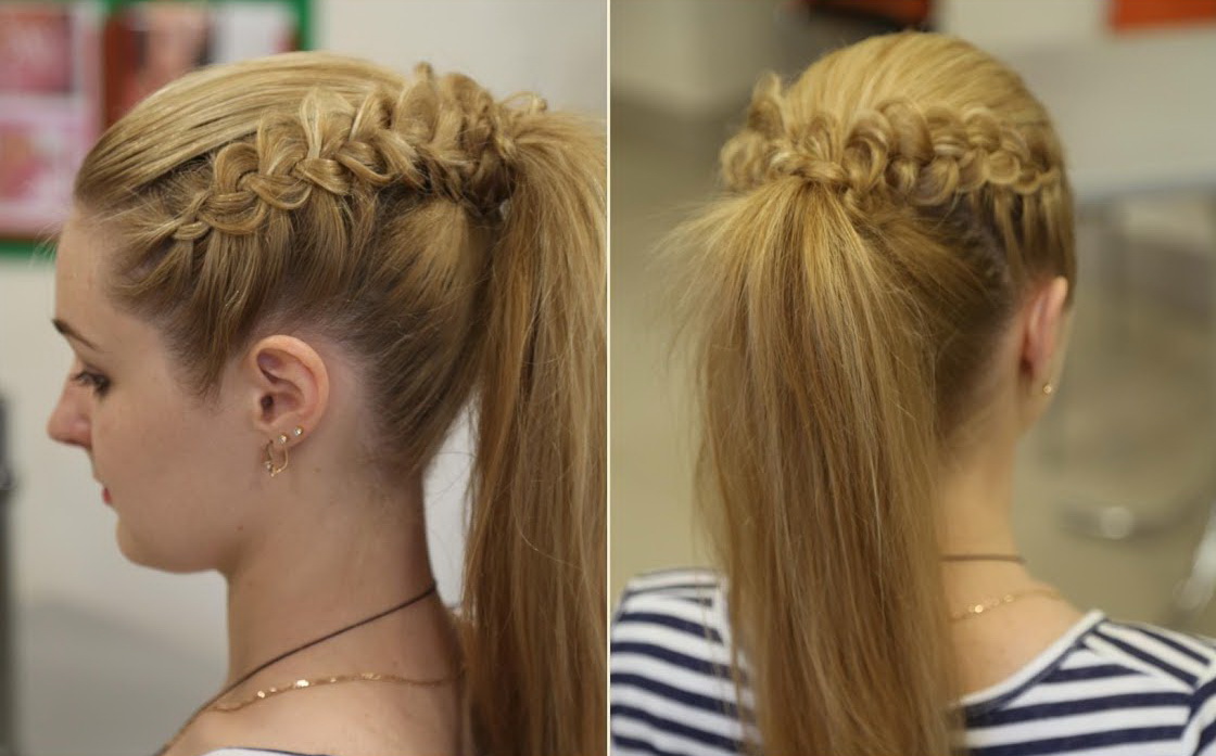 - A high tail on long straight hair is performed on the top of the head, with one strand being left so that it is then twisted around the base, disguising the elastic and making the hair more accurate. This option is also complemented by thin braids, which are woven from the hairline and go to the base.