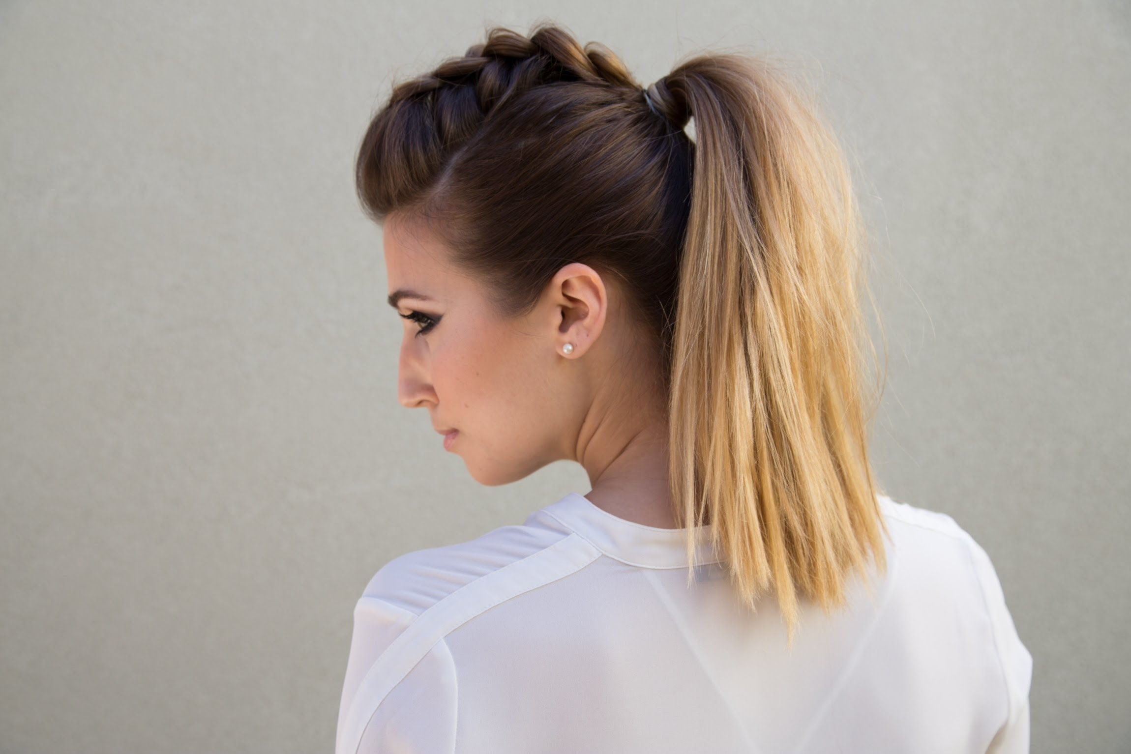 - remove the clamp and collect the lower part of the weave together with the rest of the hair in a high tail;