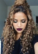 - carving gives a lot of room for modeling a wide variety of styles, so after cleansing the head, the owner of long curly hair can create quite interesting hairstyles in different styles;