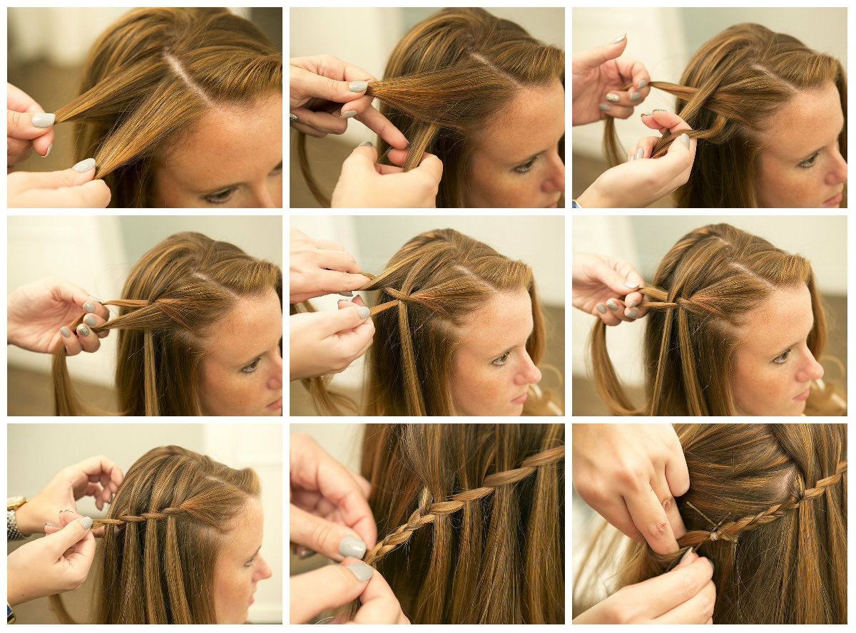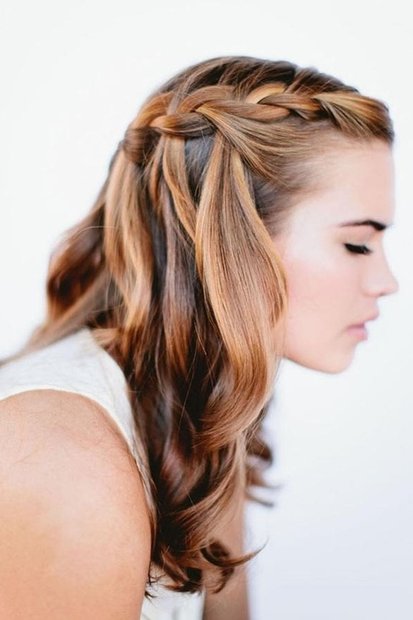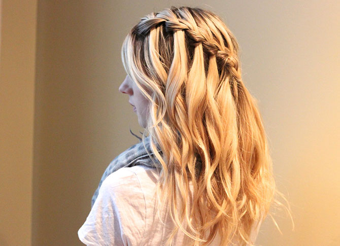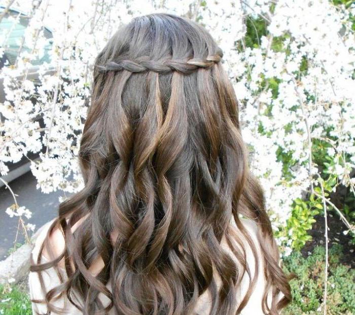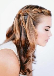 Some hairstyles using weaving can transform beyond recognition. A simple hairstyle waterfall can be an excellent option for every day, as well as festive styling on the way out. To do this, just add curls and decorations in the form of hairpins or bows.