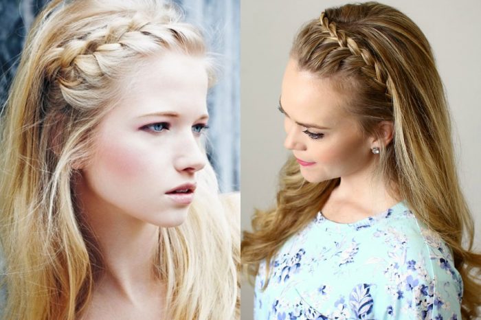 A thin braid on half-opened curls can make a girl look cute or, on the contrary, playful when she wraps her head around the rim, for example.