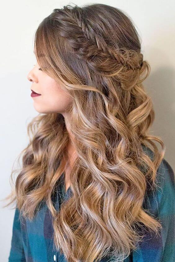 This styling can be done by leaving the bangs or weaving them directly into the braid - in any case, everything will look attractive in its own way.