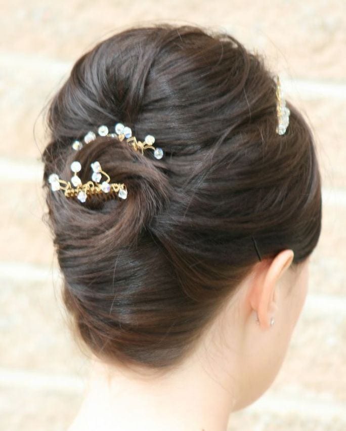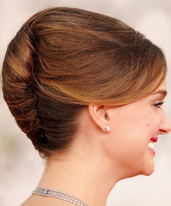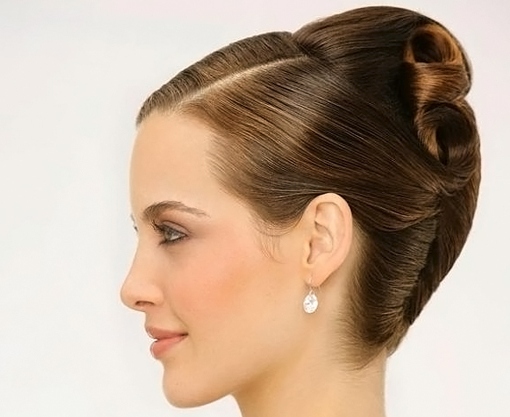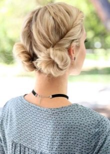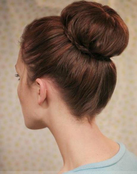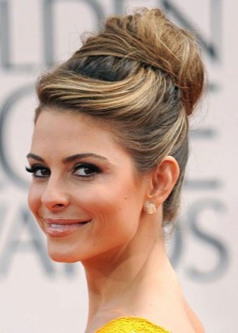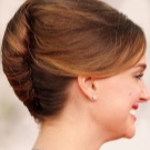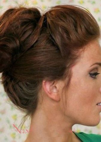 If the length of such a manipulation is not enough, you can simply comb the strands around the forehead. Make the harnesses from the rest and carefully put them in a round “shell”, fastening them with pins. Combed strands must be hidden under a bump. But make sure that the volume remains at the top and along the hairline at the forehead.