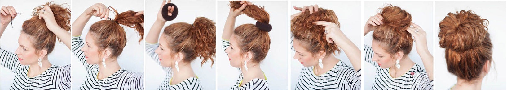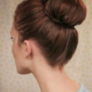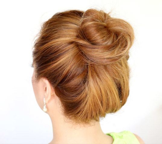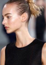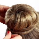Scrape the rest of your hair at the roots and collect into the tail. Do not try to pull it down strongly, it should turn out loose. Wrap your hair around the elastic band or just tucked under it. Get a kind of "nest." Loose locks can be stabbed with invisibles.