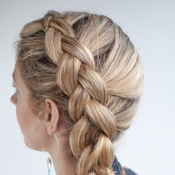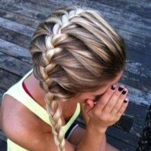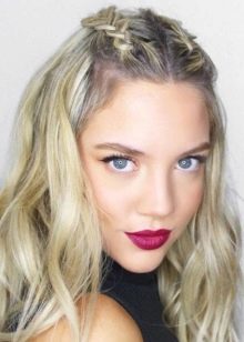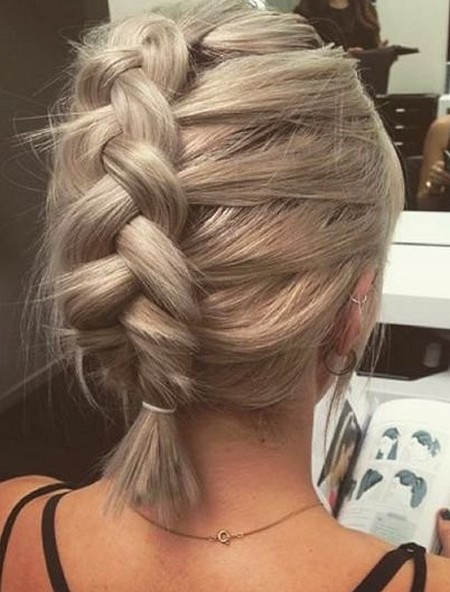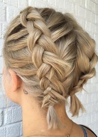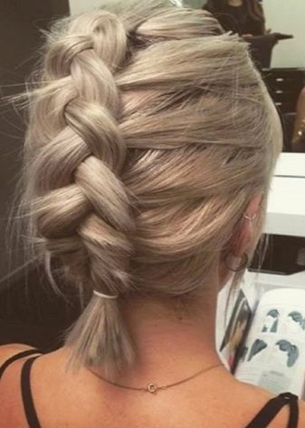 Even from short hair, you can braid pigtails. Here will suit such an option as "dragon". Take a strand from the forehead and start braiding a loose pigtail, as you move back, weave other hairs as well.