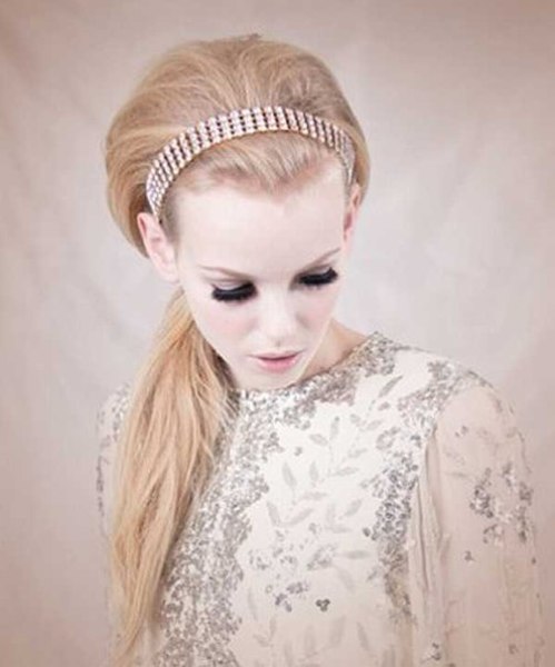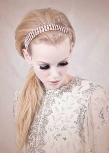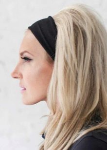 Take a bandage and gently put it on your forehead. Leave a couple of centimeters of hair around the forehead or completely close them with an accessory - you decide. As a result, you should have a hairstyle similar to the one that was the seductive heroine of the film “The Diamond Hand”.